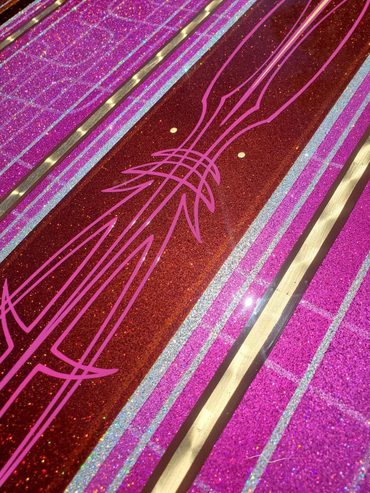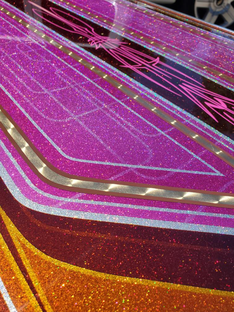 Pink and brown lowrider patterned panel with aluminum frame 24x35
